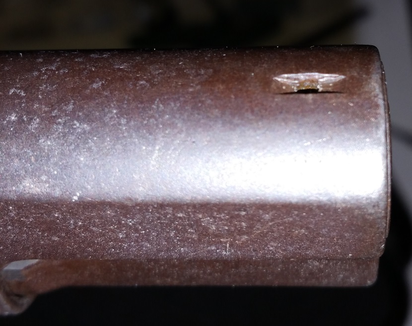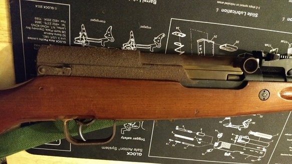 Although some metal was pitted, the rust and corrosion was stripped(bead blasted) and partially re-blued to restore the rifle to function